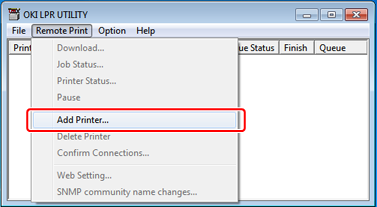 无法设置已经在 OKI LPR 实用程序中注册的打印机。若要更改端口,从 [远程打印] 中选择 [确认连接]。