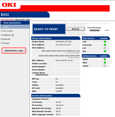[Administrator Login] 的出厂默认用户名和密码分别为 "root" 和 "aaaaaa"。
