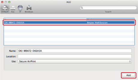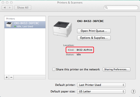 确保本打印机显示在 [打印机] 中,同时 [B432-AirPrint] 显示在 [种类] 中。